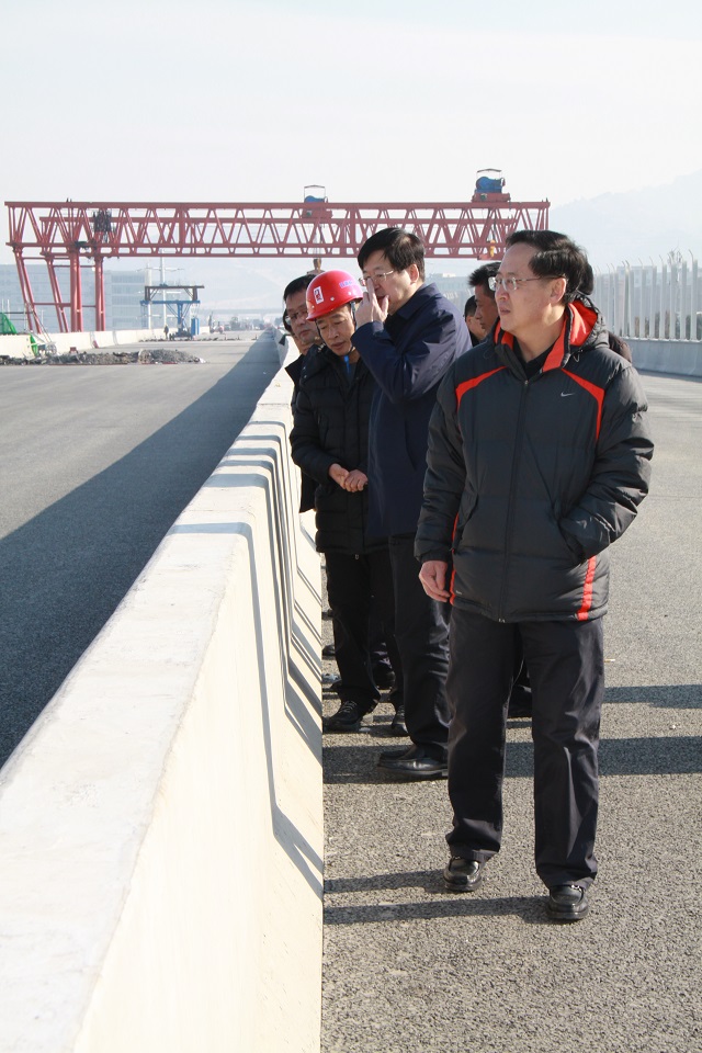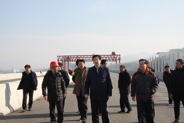 青島市住房和城鄉(xiāng)建設(shè)局局長(zhǎng)陳勇一行視察新機(jī)場(chǎng)高速連接線項(xiàng)目