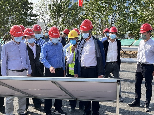 下午3:30,建設(shè)部領(lǐng)導(dǎo)抵達經(jīng)二路項目現(xiàn)場,對項目建設(shè)進行實地考察和調(diào)研。建設(shè)部相關(guān)負責人介紹了本項目建設(shè)中使用的工藝工法和項目大事記。